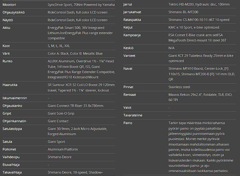 SyncDrive Sport 2 -moottori (75 Nm) ja EnergyPak Smart 625 Wh akku: Giantin tehokas SyncDrive Sport 2 -moottori (75 Nm vääntö) tarjoaa luonnollisen ja tasaisen sähköavustuksen. Valloitat nousut vaivattomasti ja ylläpidät vauhtia poluilla. Suurikapasiteettinen 625 Wh akku takaa erinomaisen toimintasäteen pidemmillekin seikkailuille. Moottorin asetuksia voi säätää helposti ohjaustangon RideControl Dash -näytöltä.